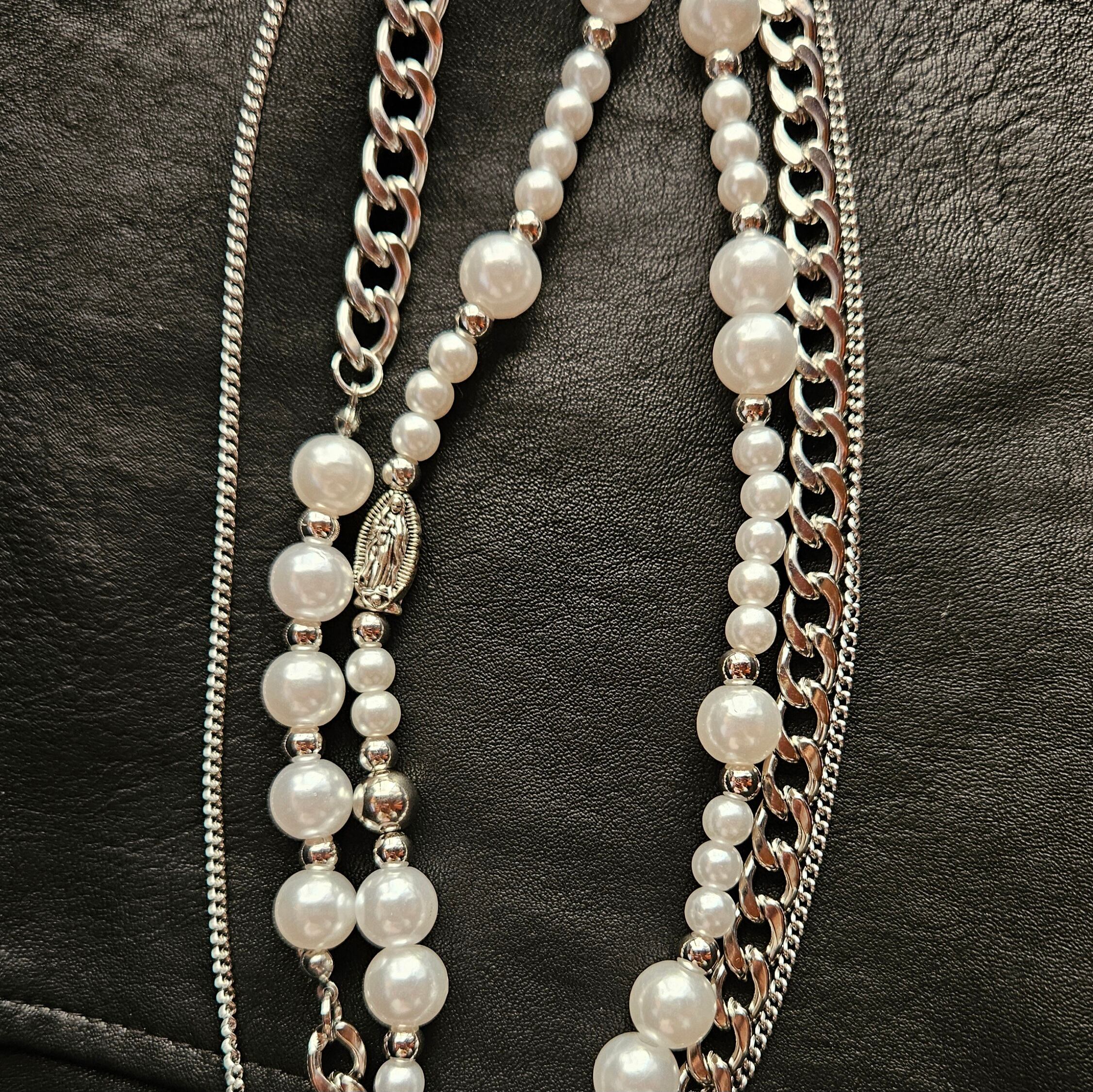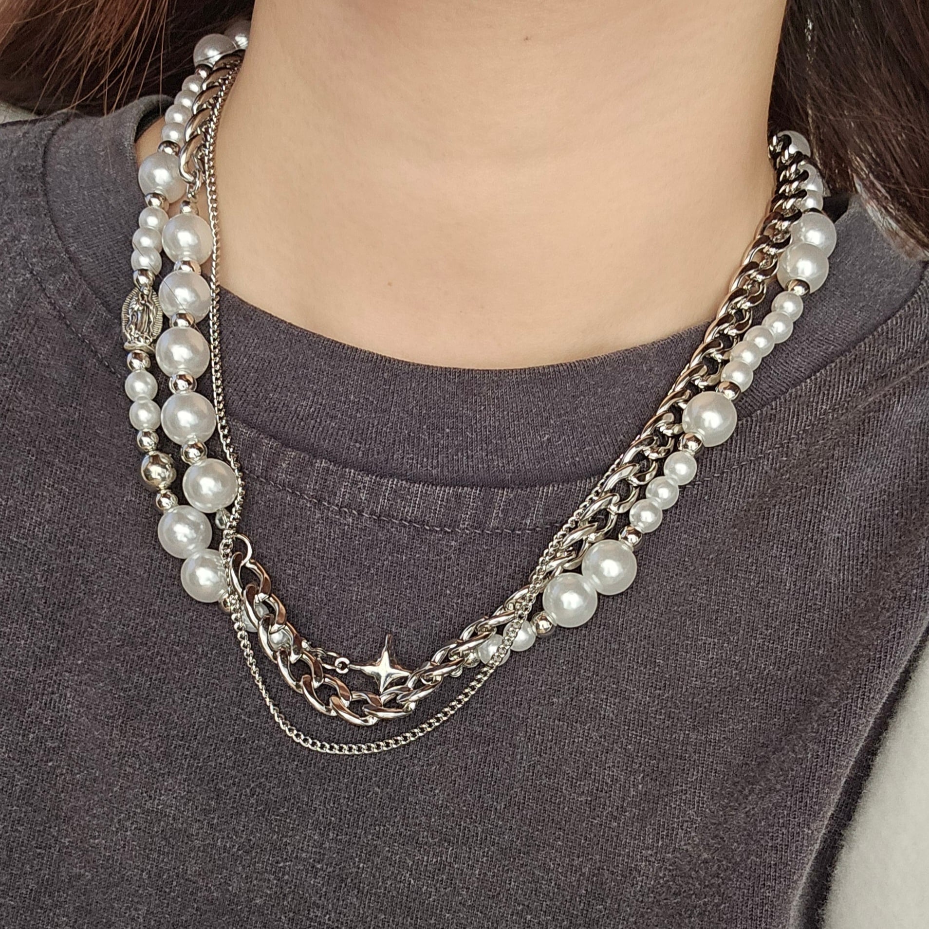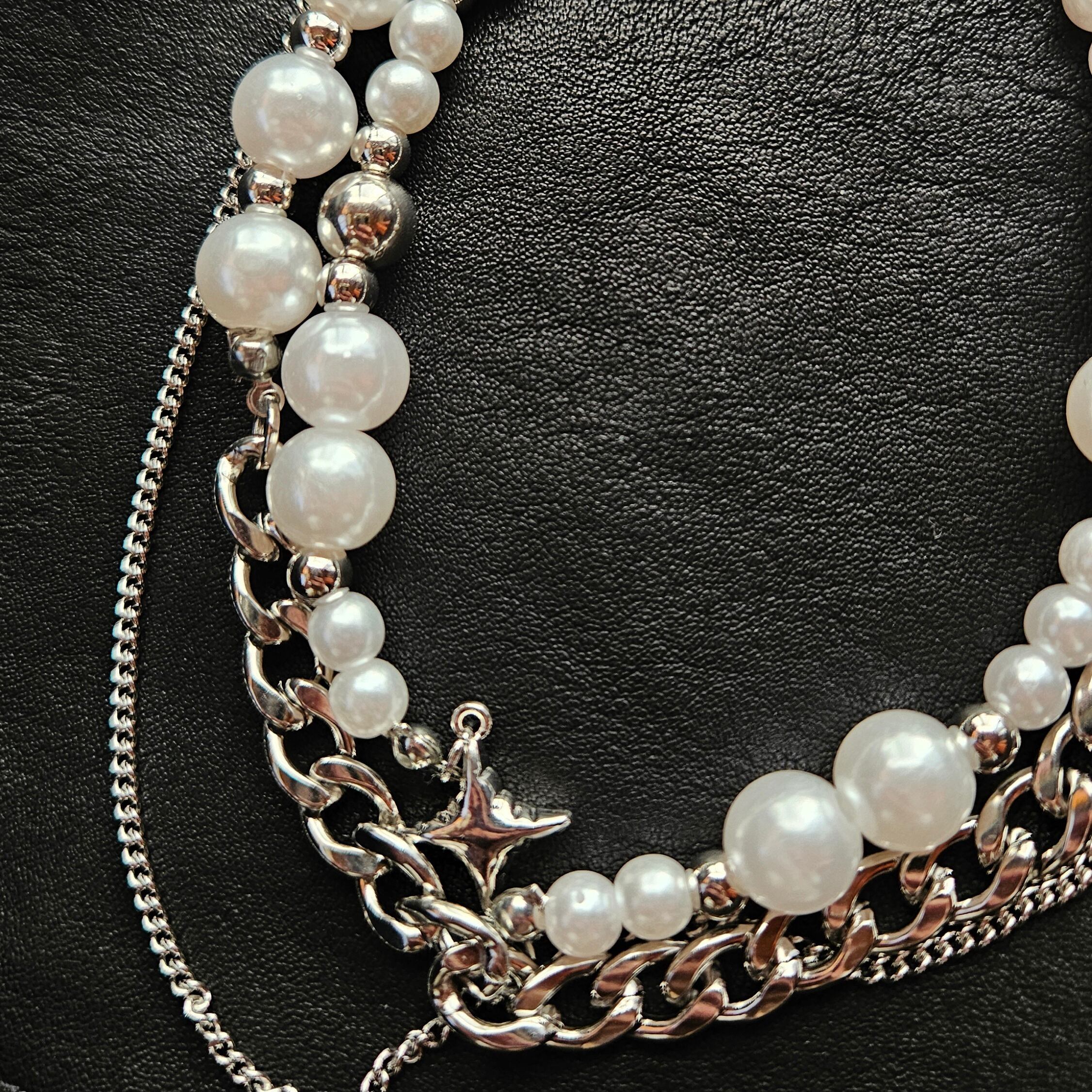 シルバー×パールビーズ レイヤーネックレス